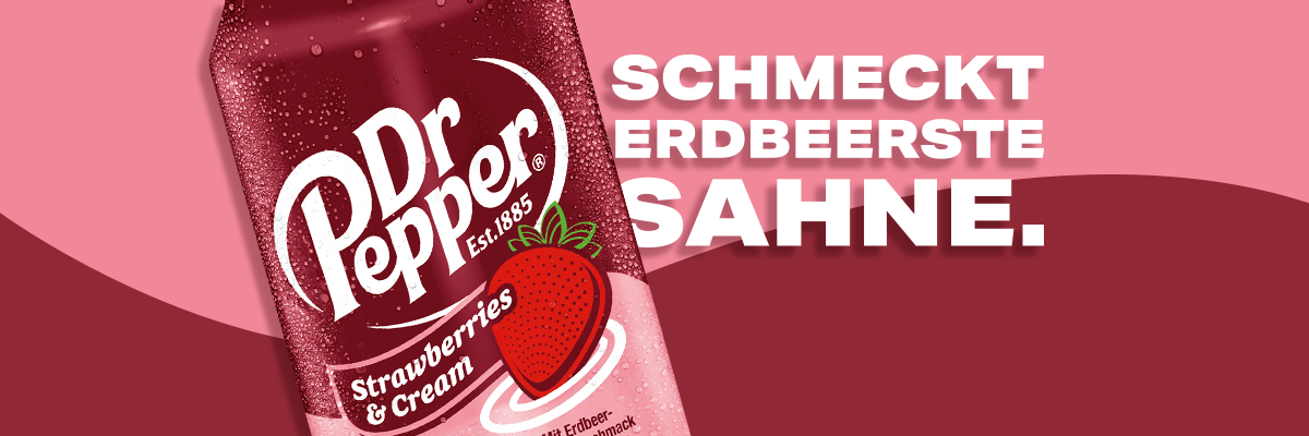 Sweets for my sweet, Dr Pepper for my Honey! Das ist keine süße Illusion, sondern Dr Pepper Strawberries & Cream. So fruity-sweet-creamy hast du uns noch nie erlebt. Jeder Sipp fühlt sich an wie ein zartes Küsschen mit dem leckersten Lipgloss der Welt.